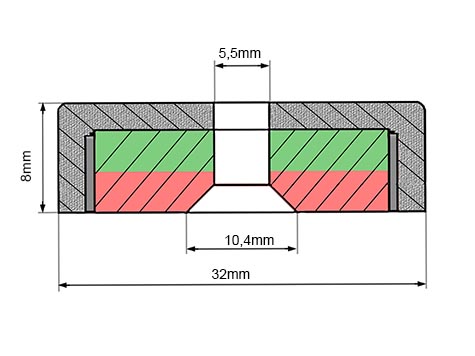 POT-32-8 - AdatlapNEODYM Mágnesek | Mágneses rögzitéstechnika | POT mágnesek süllyesztett furattal |