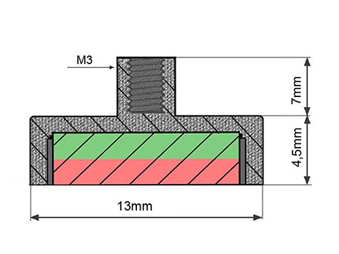 POT-B-13-4-HZ - AdatlapNEODYM Mágnesek | Mágneses rögzitéstechnika | POT mágnesek menetes hüvellyel |