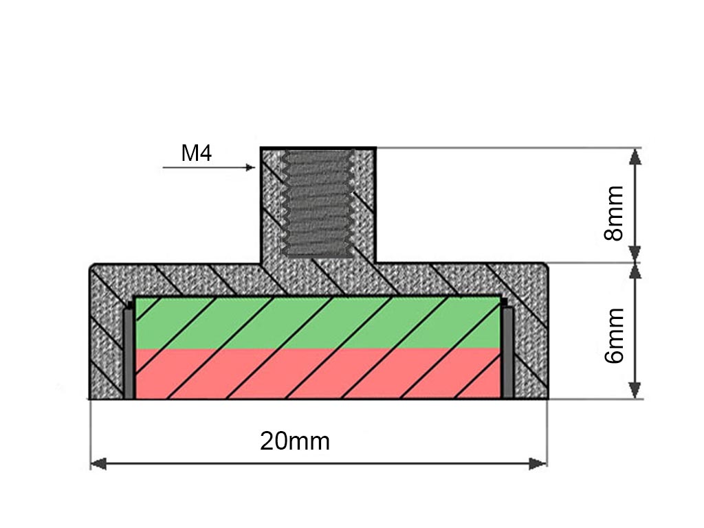 POT-B-20-6-Z - AdatlapNEODYM Mágnesek | Mágneses rögzitéstechnika | POT mágnesek menetes hüvellyel |