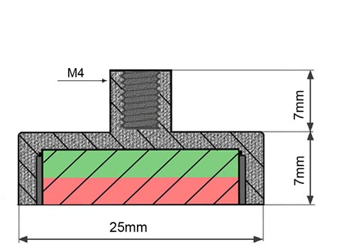 POT-B-25-7-Z - AdatlapNEODYM Mágnesek | Mágneses rögzitéstechnika | POT mágnesek menetes hüvellyel |