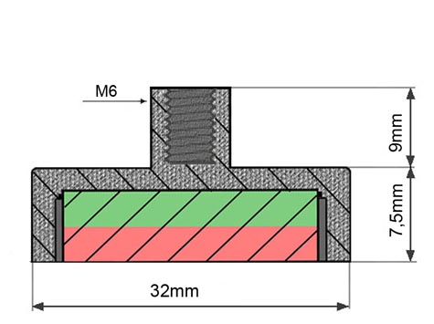 POT-B-32-8-HZ - AdatlapNEODYM Mágnesek | Mágneses rögzitéstechnika | POT mágnesek menetes hüvellyel |