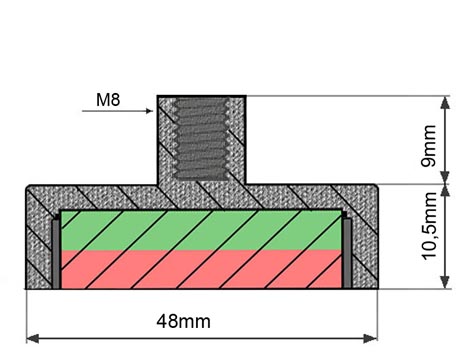 POT-B-48-10-Z - AdatlapNEODYM Mágnesek | Mágneses rögzitéstechnika | POT mágnesek menetes hüvellyel |