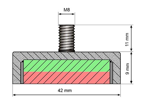 POT-G-42-9-Z - AdatlapNEODYM Mágnesek | Mágneses rögzitéstechnika | POT mágnesek menetes nyakkal |