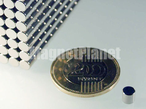 * SZUPERMÁGNES * 5x5 mm-es NEODYM mágnes korong, nikkel (NiCuNi) bevonattal.