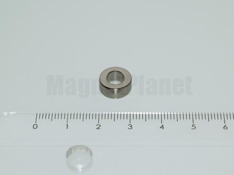 * SZUPERMÁGNES * 10x5 mm-es, 6,8 mm belső átmérőjű NEODYM mágnes gyűrű, nikkel (NiCuNi) bevonattal.
